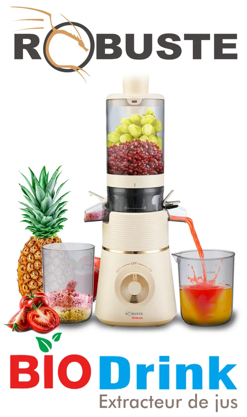 قوة وأداء متميزان: استمتع بعملية عصر سهلة وسريعة لجميع أنواع الفواكه والخضروات بفضل محرك قوي وتصميم متين.